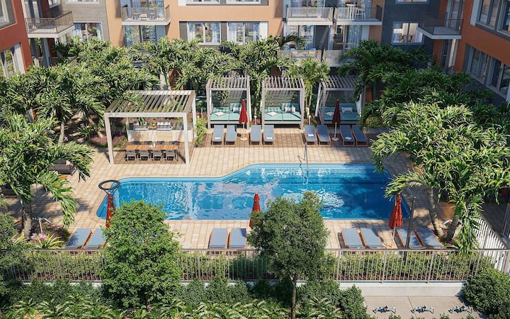 Welkom bij Centro City in Miami, FL! Onze volledig ingerichte appartementen zijn perfect voor een verblijf van een maand of langer en beschikken over een volledige keuken, een wasserette, snelle wifi, stijlvol meubilair en een speciale werkplek. Geniet van twee zwembaden in resortstijl met cabana's, barbecues, loungestoelen, een ultramodern fitnesscentrum met twee studioruimtes voor yoga, aerobics en Echelon Mirror personal training, een fitnessruimte in de buitenlucht, een zakencentrum met een co-workingruimte, een vergaderruimte en privékantoren, plus een clublounge, een speelkamer en een screeningsruimte. Huisdiervriendelijke voordelen zijn onder andere een hondenpark en gezinsvriendelijke ruimtes zijn onder andere een kinderspeelplaats en een tienerkamer. Gelegen op loopafstand van Centro City Plaza, ben je op loopafstand van alledaagse voorzieningen, winkels en eetgelegenheden, plus slechts een klein stukje rijden naar Miami International Airport. Centraal gelegen tussen Coral Gables, Little Havana, Brickell, Wynwood, Downtown en Doral, waardoor het gemakkelijk is om de beste buurten, stranden, het nachtleven en de culturele plekken van Miami te verkennen. Beheer je verblijf in de Landing-app en krijg 24/7 ondersteuning voor gasten.