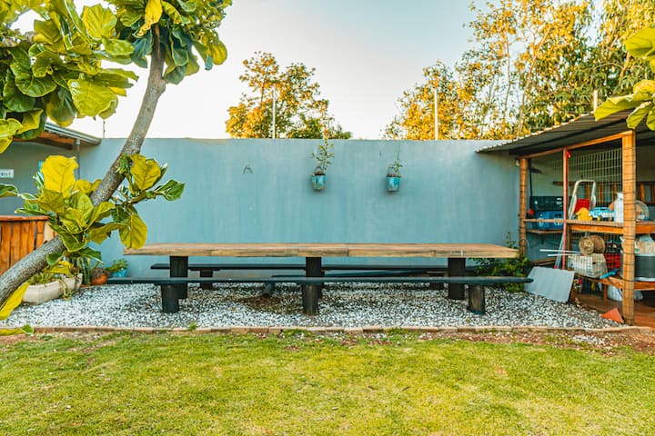 Zwembad en tuinhuis om de dag door te brengen We hebben geen kamer