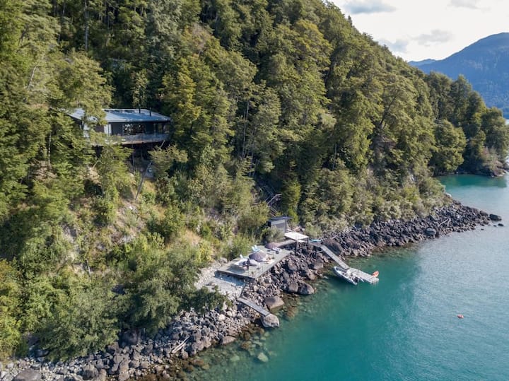 Houten huis, met uitzicht op het meer, met een groot terras, dok en uitzicht op de vulkaan. Omgeven door bos, perfect om te rusten, los te koppelen en te genieten van de natuur op een echt hemelse plek.