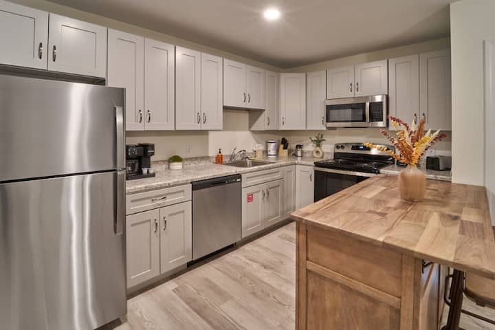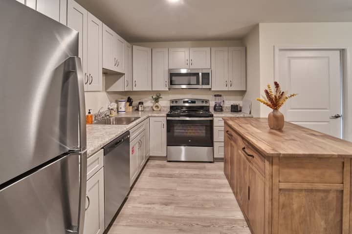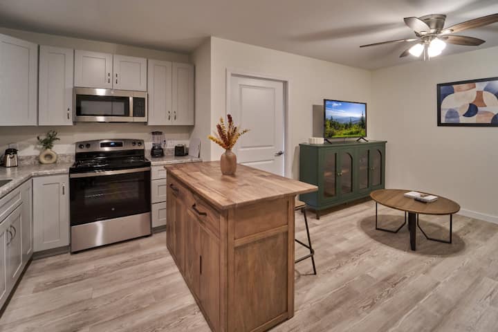 Welkom bij "The Ruby 110", een stijlvol en modern appartement perfect gelegen in het hart van de Smoky Mountains. Op slechts een steenworp afstand van enkele van de topattracties van het gebied, biedt onze 1BD-retraite (3 slaapplaatsen) het beste van twee werelden: de opwinding van Pigeon Forge en het comfort van een rustige, eigentijdse woning. ★Geweldige LOCATIE ★Heldere open woonkamer ★snelle wifi ★op het terrein wasserette ★Gemeenschappelijke speelkamer ★Volledig uitgeruste keuken