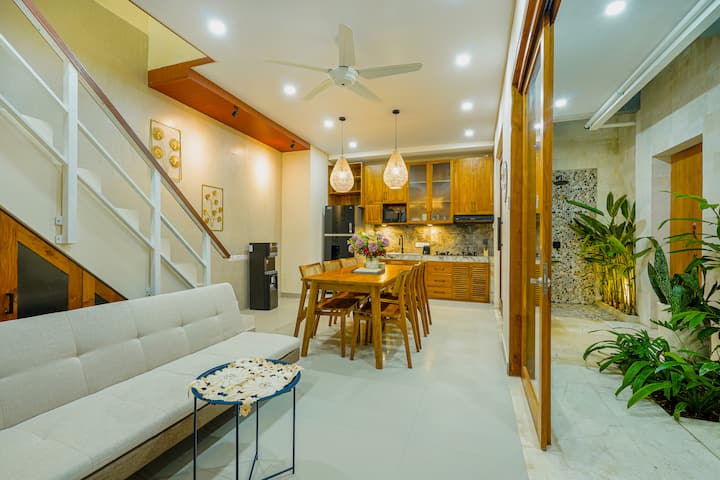 Welkom bij de villa met 3 slaapkamers en privézwembad City Sanur gelegen in de stad Sanur aan het strand, een ideale plek voor gezinnen en vrienden die willen ontspannen. Het is gunstig gelegen op slechts een minuut lopen van de hoofdstraat van Sanur en op vijf minuten van het strand, met onbeperkte opties voor dineren, cafés, bars, spabehandelingen en winkels. Ondanks de centrale ligging biedt de villa een serene ontsnapping aan de drukte.