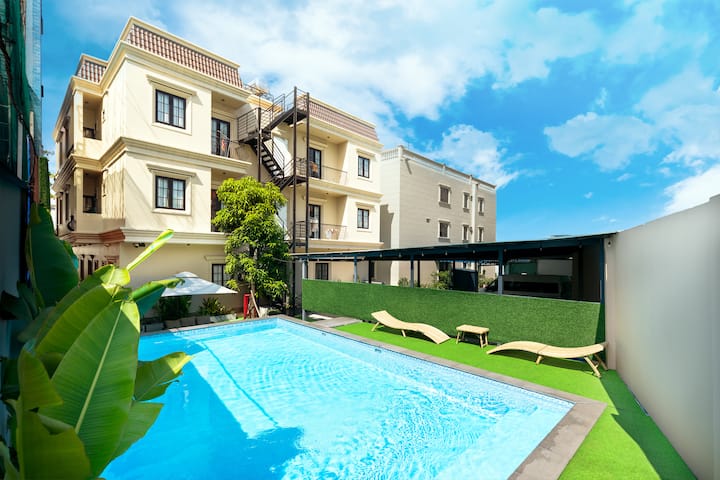 Dit is een van de weinige accommodaties in de omgeving met een zwembad.