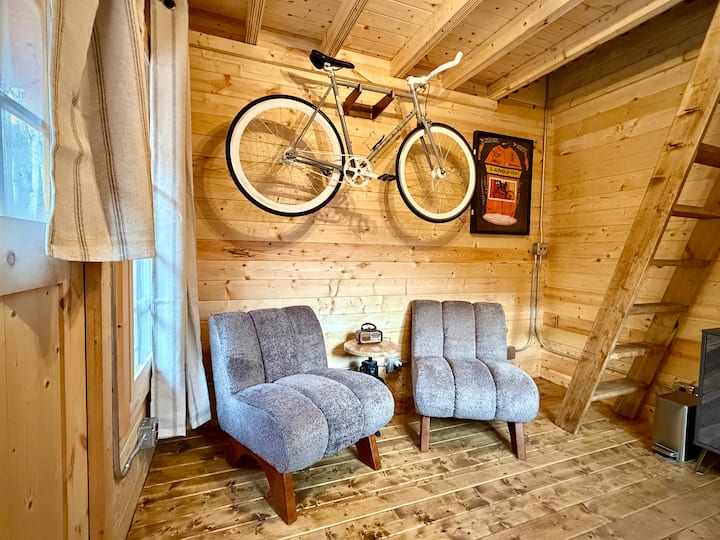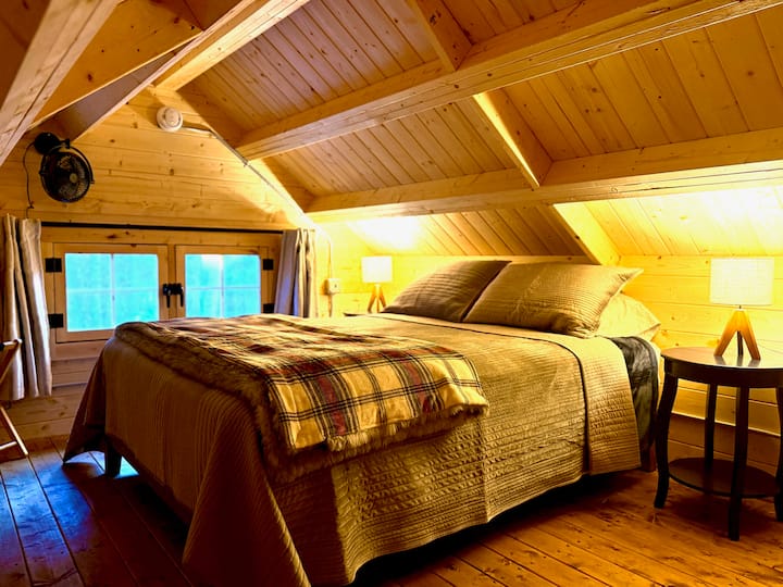 Steile paden en epische wipe-outs. Laat je gekneusde ego achter bij de deur van dit tweewielerparadijs. Of je nu rijdt over de prachtige wegen van Highland County, over paden die leuk en vloeiend zijn, of over terrein dat schreeuwt "je hebt misschien een tandarts nodig", je vindt rust in deze hut vol met dingen die je zult waarderen, zoals een fietsenrek, pomp, gereedschap en een minikoelkast voor je drankjes na de rit. De grote loft heeft een queensize bed dat klaar staat om je in slaap te wiegen, passend bij het beest dat je weet dat je bent.