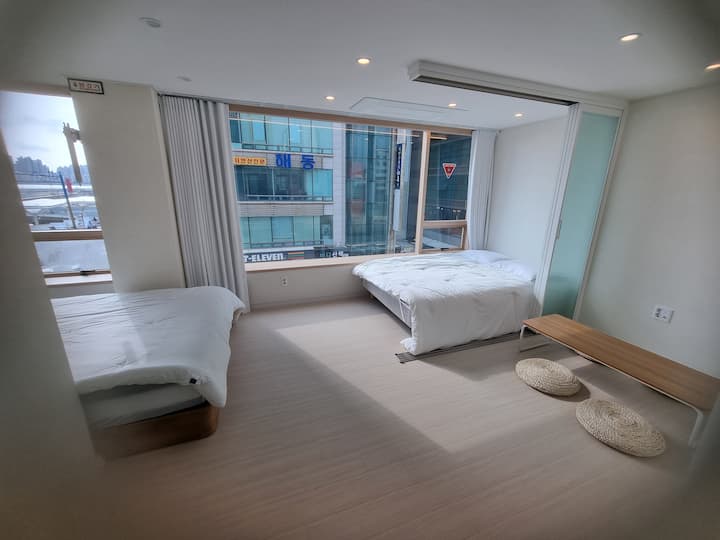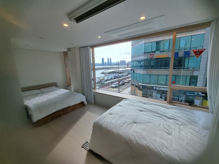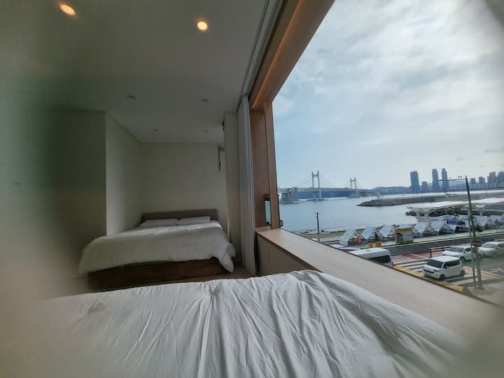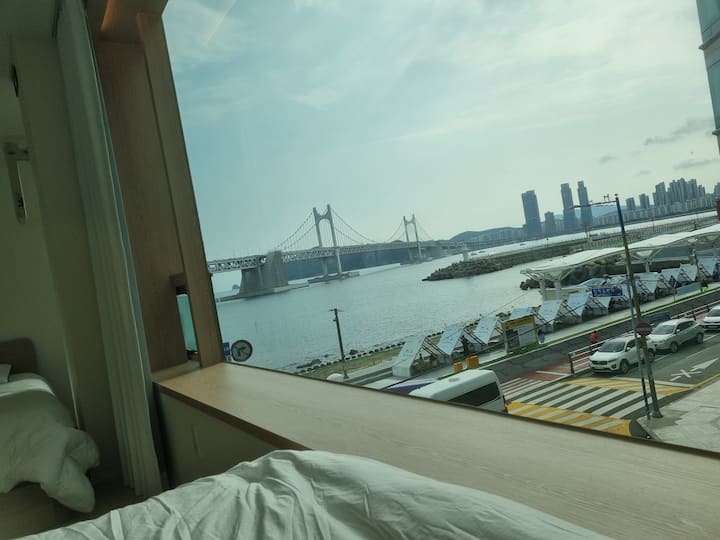 Gwangalli Ocean View Nieuwste accommodatie! Direct aan het strand, eerste lijn, de foto's zijn van de kamer zelf, uitzicht en tevredenheid zijn uitstekend, accommodatie met uitzicht op zee!