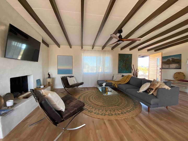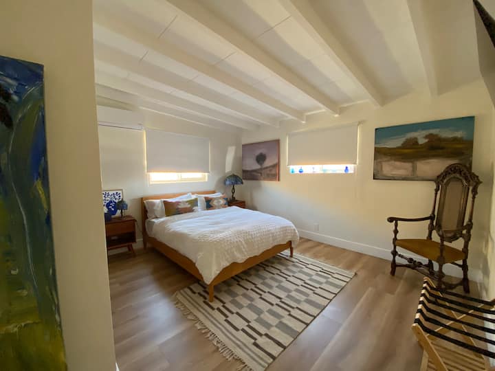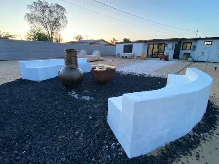 Ik ben een hedendaagse kunstenaar, mijn vrouw een curator. We woonden in New York voordat we ons in Joshua Tree vestigden. Getrouwd sinds 2020. We kwamen naar JT in 2021, namen een kijkje naar de geweldige zonsondergang en besloten om te kopen. Het is veel werk geweest om hier te komen, maar we zijn zo blij dat we dat hebben gedaan. We vinden het geweldig dat we de schoonheid van dit gebied kunnen delen met onze gasten. Alle kunstwerken zijn beschikbaar voor aankoop. GENIET van Joshua Tree en of 29 palms. We weten dat je het hier geweldig zult vinden. Bekijk het Alien Robot Museum in het centrum van Joshua Tree.