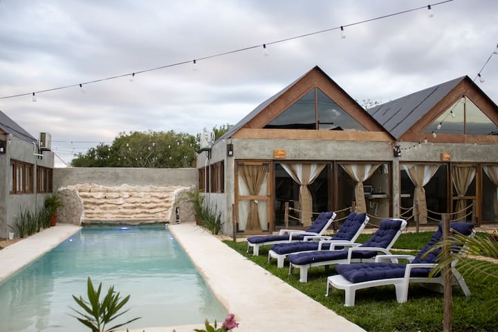 Privékamer in houten huisje in Telchac Puerto, Mexico
