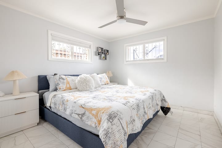 Trek je terug in een van de drie prachtig ontworpen slaapkamers, elk geoptimaliseerd voor rust met supercomfortabele hybride matrassen, verduisterende gordijnen, pluche beddengoed en kussens, slimme sloten en plafondventilatoren om een perfecte nachtrust te garanderen.