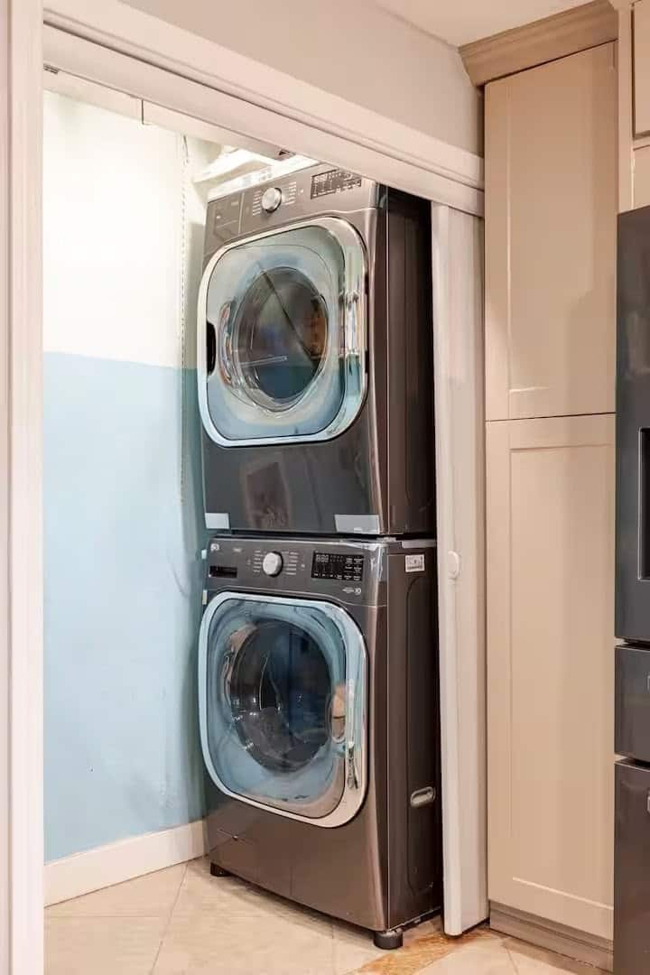 Gemak: een volledig uitgeruste wasruimte met een slimme extra grote wasmachine en droger betekent dat je met een schone kledingkast naar huis kunt terugkeren.