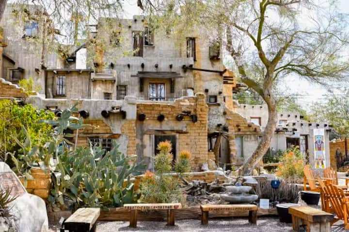 Gasten zijn dol op de onoverwinnelijke locatie - op enkele minuten lopen van wereldberoemde minerale spa's, lokale restaurants, supermarkt, Cabot's museum, zoveel geschiedenis en ongelooflijke wandelingen; en korte ritten naar Palm Springs, Pioneertown, Joshua Tree National Park, El Paseo, golf van wereldklasse en Coachella Fest. Dit is niet zomaar een woning, maar een ervaring waar je je hele leven blij aan terugdenkt.