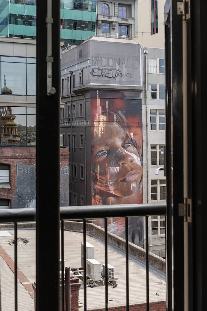 Een smalle metalen trap leidt naar je eigen dakterras - een verhoogde plek om van de zon te genieten, te genieten van een ochtendlees of te ontspannen met een drankje, omringd door stadstorens en erfgoedkoepels met een glimp van de Royal Botanic Gardens.