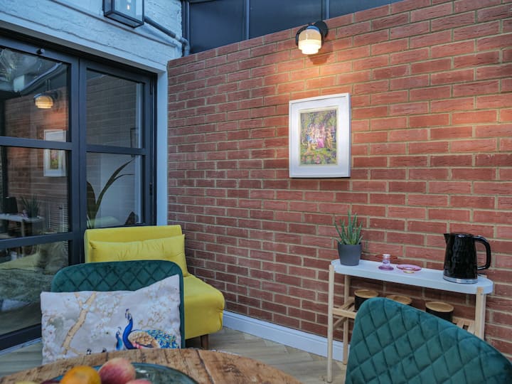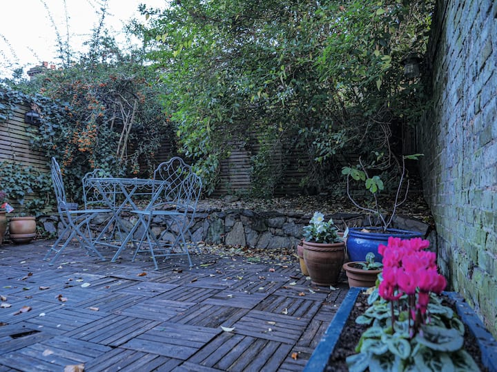 Stijlvolle kelderflat met één bed en tuinboog