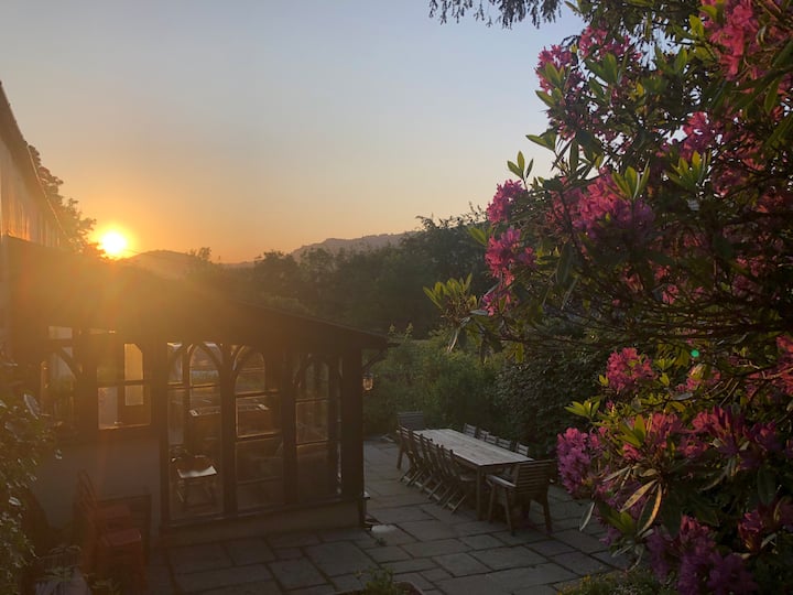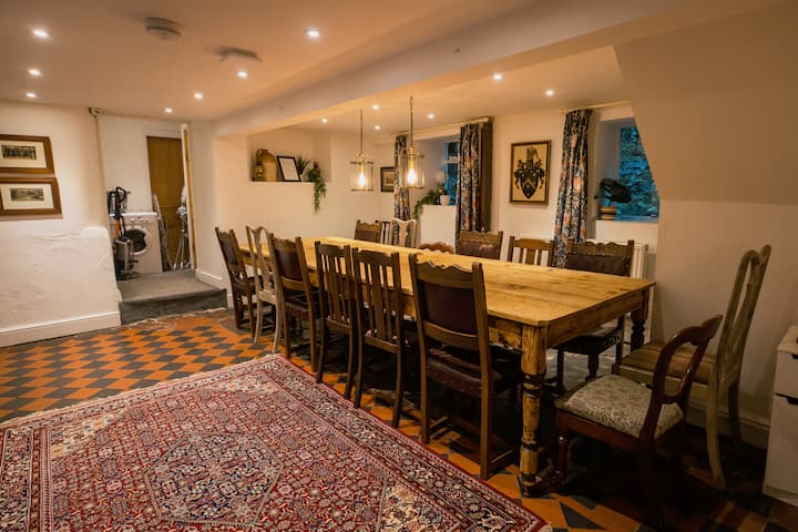 Cwmalis Hall is een historisch Welsh landhuis, ideaal voor grote groepen, familiebijeenkomsten en vieringen. Het combineert charme uit de periode met modern comfort en biedt royale woonruimtes, een speelkamer, elegante slaapkamers en een grote eigen bosrijke tuin. Een handige landelijke ontsnapping net buiten de A5, dicht bij schilderachtige wandelingen en lokale bezienswaardigheden.