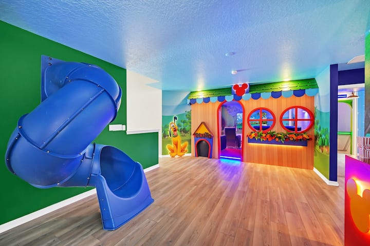 Bioscoopkamer met Mickey-thema + kinderspeelplaats