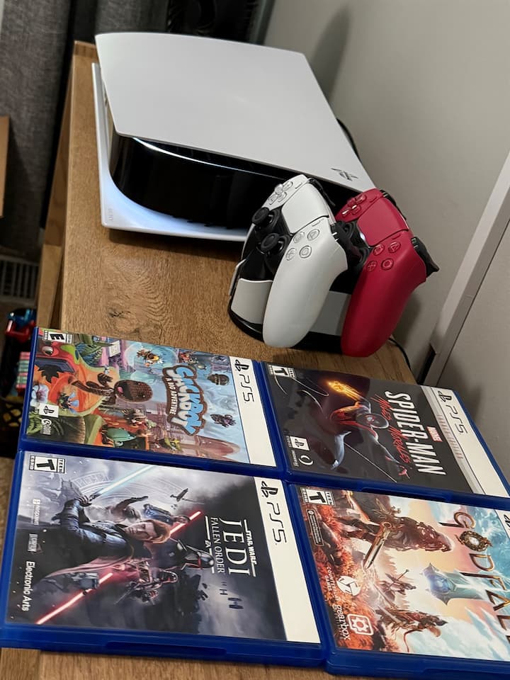 Tweede verdieping: drie gezellige slaapkamers (twee met eigen balkon), waaronder een stapelbedkamer met leuke spelletjes voor kinderen en PS5.