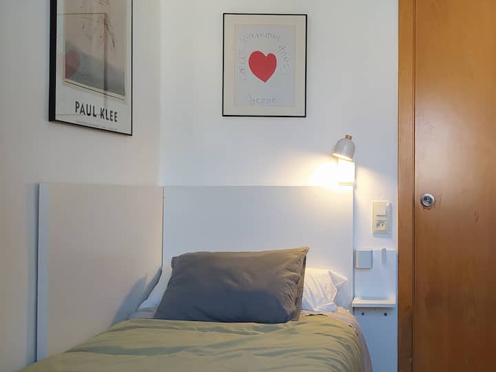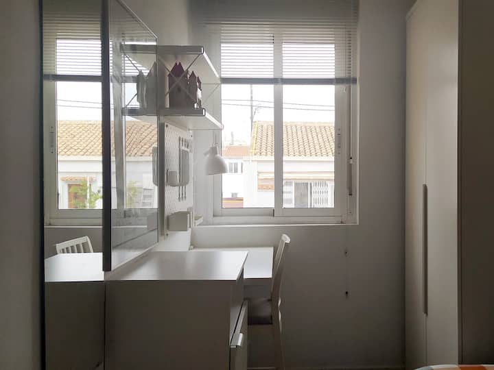 Ik presenteer mijn huis gelegen aan een rustige straat in de wijk Ruzafa in Valencia. Het heeft twee eenpersoonskamers en een tweepersoonskamer die ik tot je beschikking stel naast een klein kantoor, omdat de keuken en woonkamer voor privégebruik zijn. En Vim, mijn kleine hond, stierf een paar maanden geleden, maar ik kan onze profielfoto nog steeds niet veranderen.