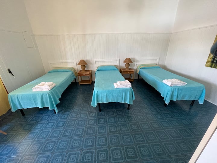 1 queensize bed, 1 tweepersoonsbed, 1 eenpersoonsbed, 1 slaapbank, 1 stapelbed
