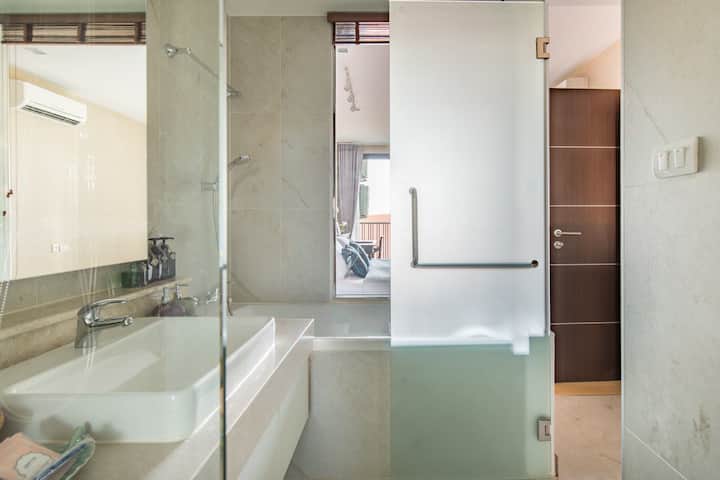 Heerlijk ontspannen met een diep bad en een regendouche.