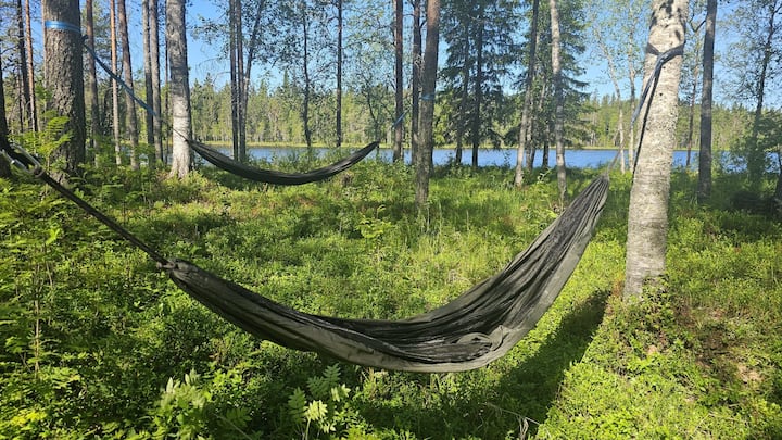 Huisje aan bos-, rivier- en meerzijde met eigen sauna