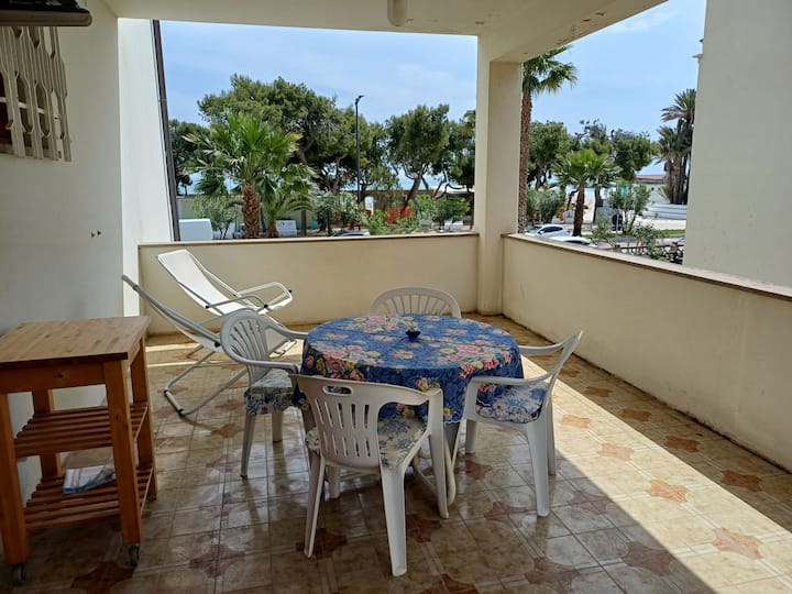 Klein huis op de eerste rij van de zee met een prachtig terras