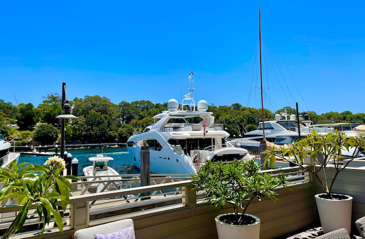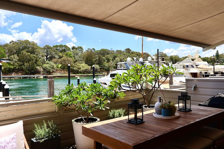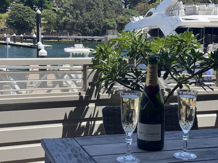 Het privéterras aan het water, met ononderbroken en niet-verlichte uitzicht - een stukje paradijs en de ultieme plek om Sydney op haar best te ervaren.