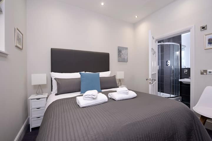 Alle slaapkamers hebben ramen, maar de hoofdslaapkamer wordt ook verlicht door een over het bed hemellicht (met een gemakkelijk te gebruiken raamschaduw voor diegenen die willen uitslapen). Het heeft een kingsize bed in het Verenigd Koninkrijk en een eigen badkamer met een volledig omheinde regendouche om je een luxe, spa-achtige ervaring te geven. De twee extra slaapkamers zijn ook uitgerust met kingsize bedden in het Verenigd Koninkrijk en delen een familiebadkamer met hoge plafonds, hemellicht en dezelfde high-end afwerkingen van het hoofdbad. Gratis wifi.