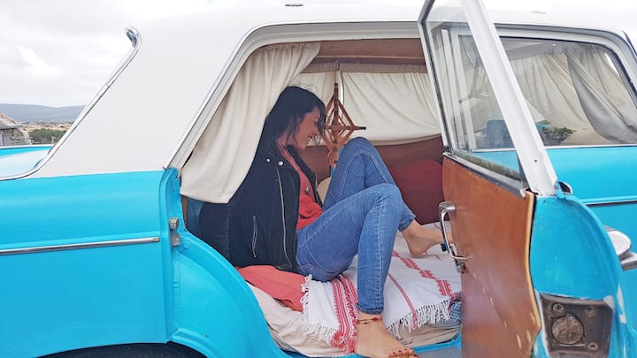 Maak deel uit van onze Catfarm-community en slaap in de upcycled Franse oldtimer. De 74 Peugeot 404 is een kunstwerk met een eigen geschiedenis, het ging door de grachten van Sete in de jaren 90 en in een intensief proces van een jaar gingen we over in accommodatie. Comfortabel en privé met een panoramisch uitzicht op de historische middeleeuwse Poussan en zijn wijngaarden.
