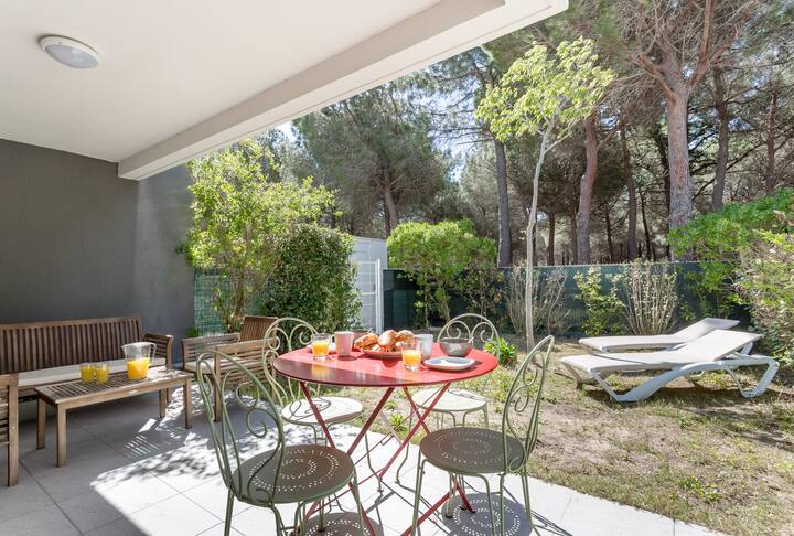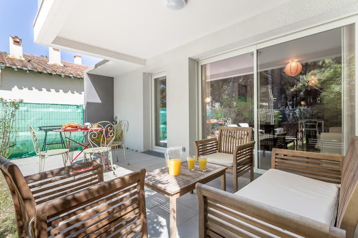 Appartement op de begane grond, rustig, op 200 m van het strand!