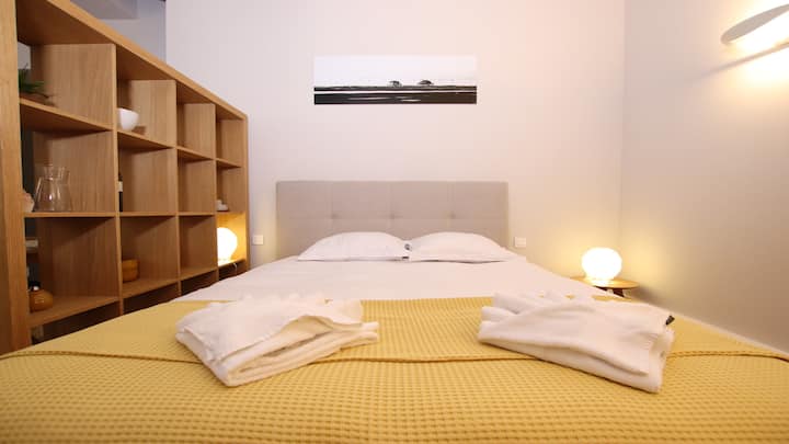 De functionele en volledig uitgeruste keuken is voorzien van een koelkast, kookplaten, een magnetron en alles wat je nodig hebt om je maaltijden te bereiden alsof je thuis bent. De badkamer is uitgerust met een Italiaanse douche, een houten en granieten wastafel en een zwevend toilet.