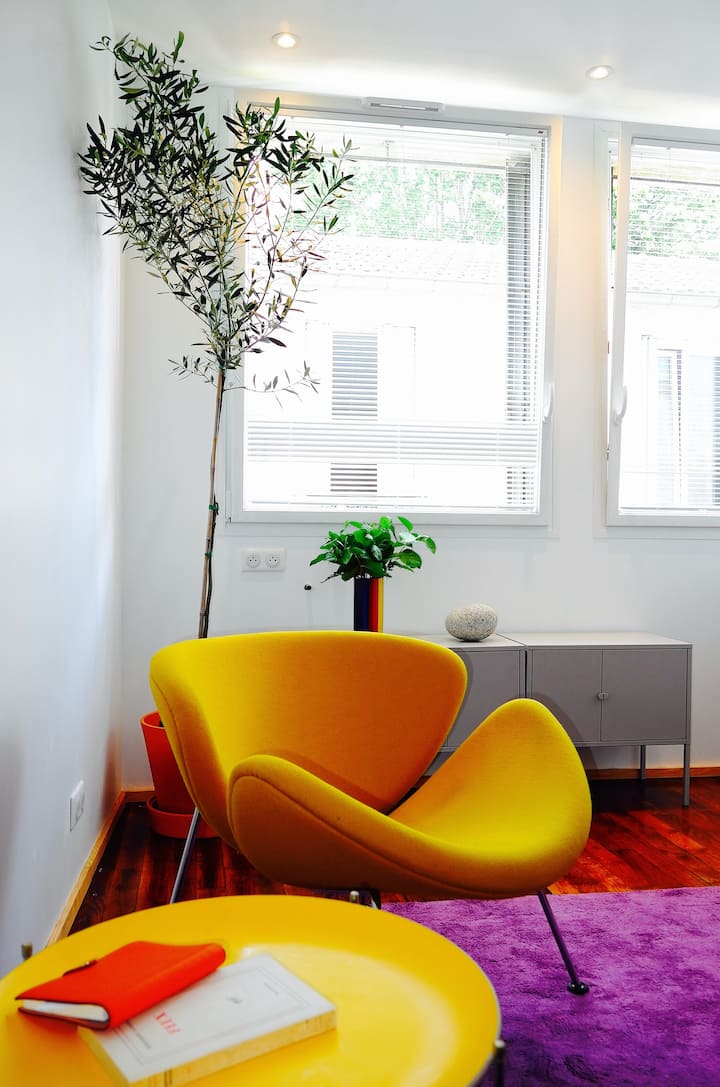 We wonen in La Buttes aux Cailles, een dorp in de stad, bewaard gebleven en dicht bij alles. Zeer 'trendy', er zijn tuinen, markten, kleine restaurants, trendy bars en een aantal van de beste kaasmakers, banketbakkers en wijnwinkels in Parijs. Wij bieden 2 onafhankelijke slaapkamers in een klein gebouw in 1930 in de rust van een charmante doorgang. We zijn je gastheren, buren en gidsen. Architect en kunsthistoricus, we laten je alles zien wat er te doen en te ontdekken is in onze buurt en in Parijs.