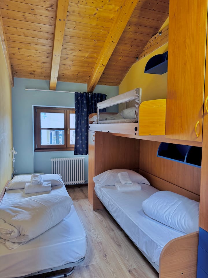 1 eenpersoonsbed, 1 stapelbed