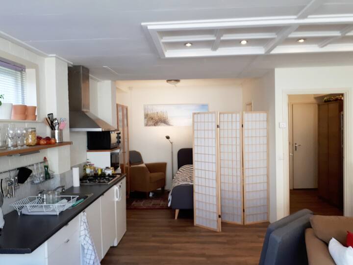 Ik ben net gepensioneerd en woon al 17 jaar met veel plezier in Groningen. De verhuurstudio's heb ik zelf bedacht/ontworpen en grotendeels eigenhandig, als liefhebberij, gebouwd voor mijn kinderen, kleinkind en vrien-den/-dinnen. Als er niemand is, verhuur ik het graag af en toe aan mensen die Groningen e.o. beter willen leren kennen, hun studerende kinderen willen bezoeken of aan mensen die voor hun werk/studie een tijdelijk onderkomen zoeken. Je zal van mij weinig last hebben, ik bemoei me niet actief met mijn gasten. Ik ben ook meestal vrij rustig en heb een goede relatie met buren. Aan het eind van de middag ben ik regelmatig te vinden op het terras van café De Minnaar, dat is bij mij om de hoek in de Kleine Rozenstraat. Als ik gasten heb, ben ik overigens goed te bereiken via mijn slimme telefoon.