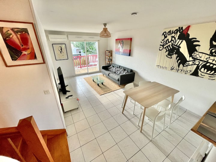 Capbreton centrum Apt met airconditioning en 2 surfplanken