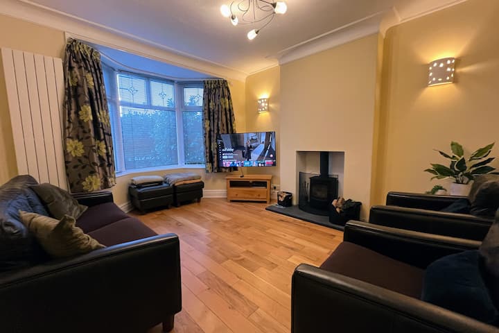 'Perfect voor het Lake District' Ruim en gemoderniseerd, comfortabel en handig voor uitstapjes en tussenstops, plus vertrektijd om 11.00 uur. Geniet van 3 grote slaapkamers, 4 grote luxe bedden, + slaapbank. 2 grote badkamers, volledige keuken en bijkeuken, lounge met houtkachel, grote eetkamer met airconditioning. Off-road oprit parkeren voor 2 middelgrote auto's, gratis EV-oplader, afgesloten tuin. Een grote Sainsburys op 150 meter afstand, Windermere in Lake District 30 mijl via M6 39 minuten Googl maps, Lancaster 4 mijl.