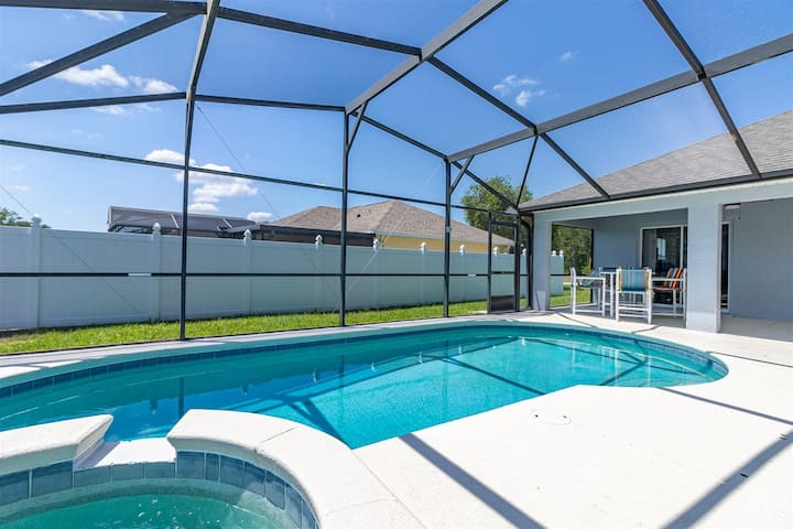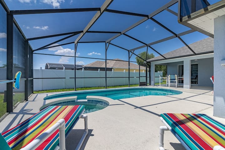 Ons onlangs gerenoveerde huis is een prachtige 4 slaapkamers 3 badkamers met een eigen 26ft zuidoost gericht zwembad en spa.