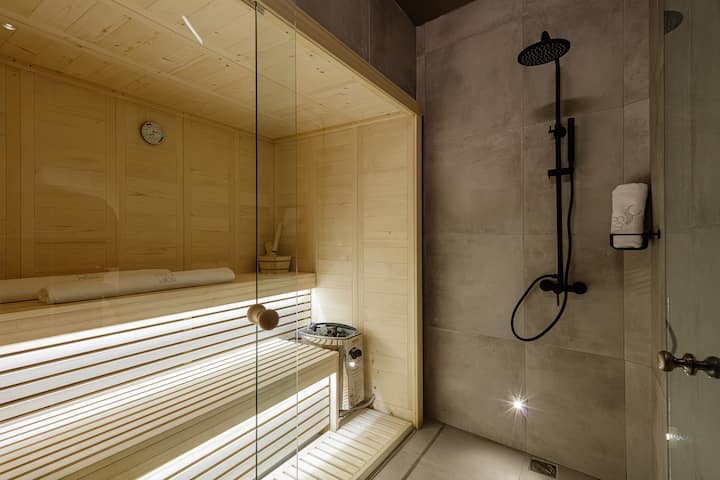 Sauna: is ontworpen voor ontspanning voor maximaal drie gasten die tijdens hun vakantie op zoek zijn naar een moment van zelfzorg en wellness. In deze ruimte is ook een regendouche te vinden.