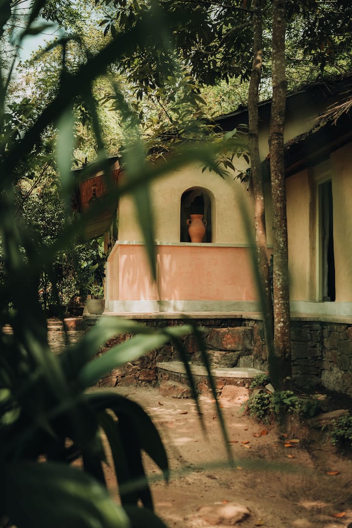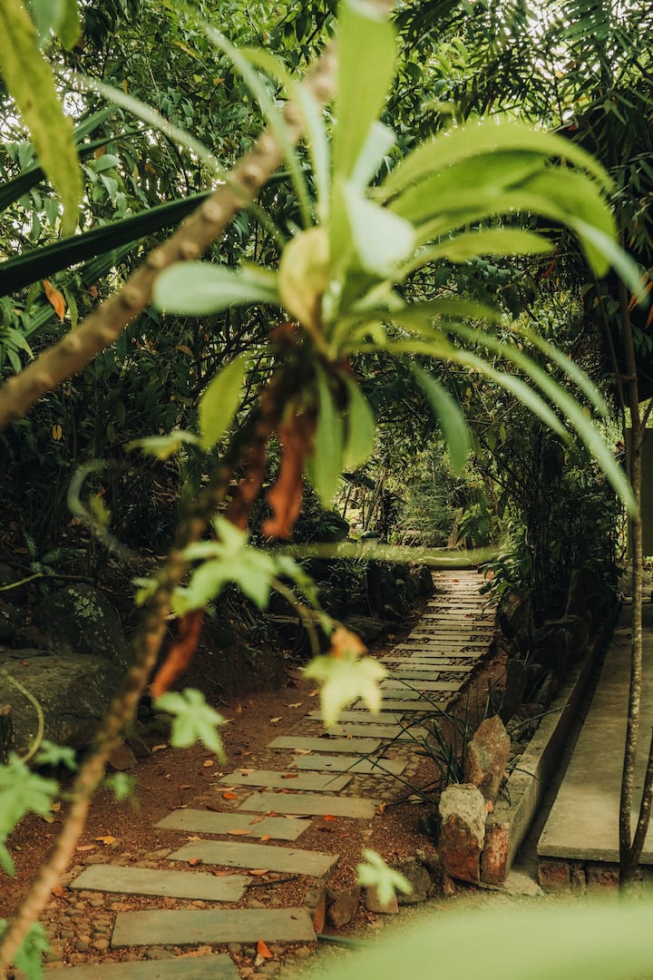 Wij zijn Bianca en Ishanka, een Zwitsers-Sri Lankaans stel dat een diepe liefde voor de natuur, balans en bewust leven deelt. Samen met onze kleine familie, honden en kat, leven we tussen twee werelden en storten we ons hart in Arawe.
