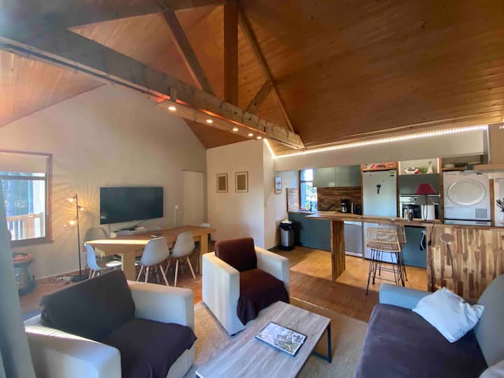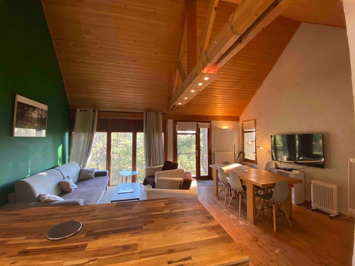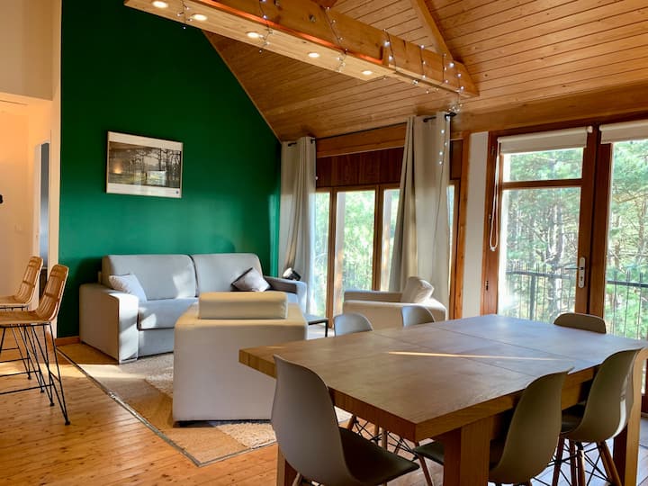 - de villa in de dennen in Quend Plage aan zee 3 appartementen: 2 personen, 4 personen, 5 personen (1e verdieping) en een loft met een mezzanine bed voor 2 personen.