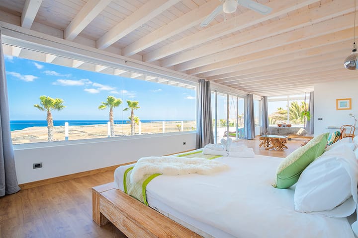 Alle slaapkamers zijn tweepersoonskamers en zeer ruim. De mastersuite heeft een uitzonderlijk uitzicht op zee en is meer dan 50 meter groot. De ruime kamer met 2 meter breed bed, natuurstenen bad, grote kledingkast, zithoek en ensuite inloopdouche is perfect om te ontspannen, te ontsnappen en te genieten van het prachtige uitzicht. De dubbele openslaande deuren leiden naar een groot terras met zowel ruimte om in de schaduw te zijn of te ontspannen en van de zon te genieten.
