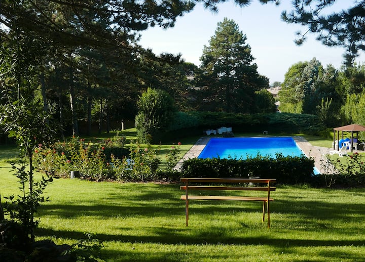 Dit is een van de weinige accommodaties in de omgeving met een zwembad.