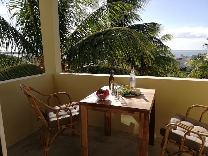 Adembenemend uitzicht in alle richtingen, deze villa die in 2019 is voltooid, profiteert ten volle van de bries van de Indische Oceaan. Gebouwd met romantiek in gedachten, heeft elke ruime studio een eigen buitenterras waar je kunt genieten van elke maaltijd, een eigen doucheruimte, handdoeken voor gasten (neem je strandhanddoeken mee) een eigen keuken. Ventilator. Glasvezel WIFI en airconditioning. Er is een prachtig gedeeld dakterras met een 360 graden panoramisch uitzicht op zee en de bergen. Perfect om onder de sterren te dineren. Eigentijdse styling overal. Gelegen dicht bij de beste natuurlijke hoogtepunten die dit prachtige eiland te bieden heeft, zoals het stuk prachtige stranden van Le Morne van acht kilometer en de ongerepte bossen en watervallen van Chamarel en het nationale bos. De studio's zijn minder dan 1K naar alle voorzieningen en goede restaurants. Op 10 minuten rijden van het wereldberoemde kiteboarden en windsurfen Le Morne Brabant. Voor degenen die minder avontuurlijk zijn die liever onder een boom slapen met een goed boek, heeft Le Morne ook het extra voordeel van meer beschutte zwem- en zonstranden. Het tempo van het eilandleven is om te ontspannen in deze omgeving. Deze locatie is het meest geschikt voor mensen die overdag actie zoeken. Het nachtleven is vriendelijk en rustig. Eenheid schoongemaakt na 4 nachten door de huishouding (verblijven van meer dan 5 nachten) en bij het uitchecken