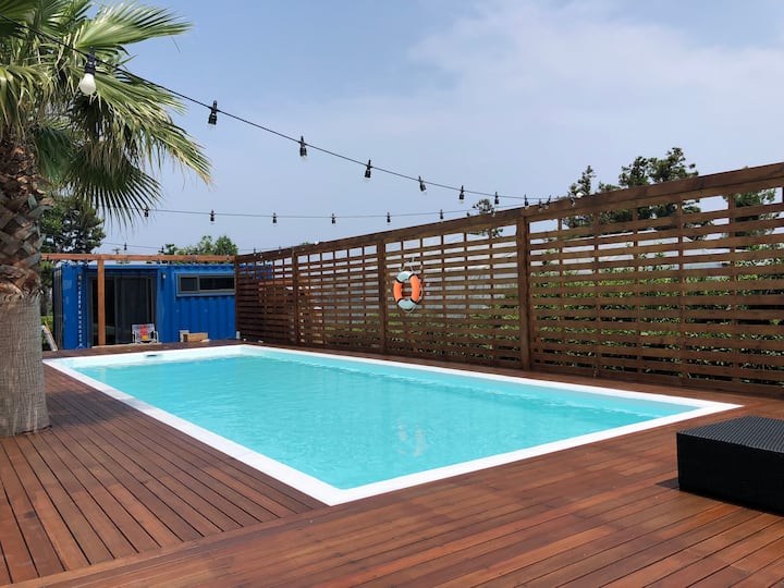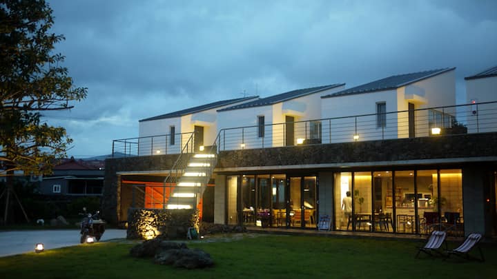 We ontvangen je graag hier in Jeju waar ik graag ben. We hebben 4 tweepersoonskamers, 1 kamer met twee eenpersoonsbedden, 2 gehele huizen en we wonen in een van de gehele huizen op dezelfde plek. Elke kamer en woning is absoluut privé! Alleen het café op de eerste verdieping en de voortuin worden met iedereen gedeeld:-)