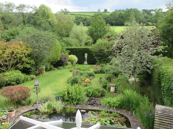 Uitzicht op de vallei en de tuin