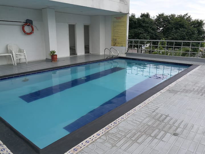 Dit is een van de weinige accommodaties in de omgeving met een zwembad.
