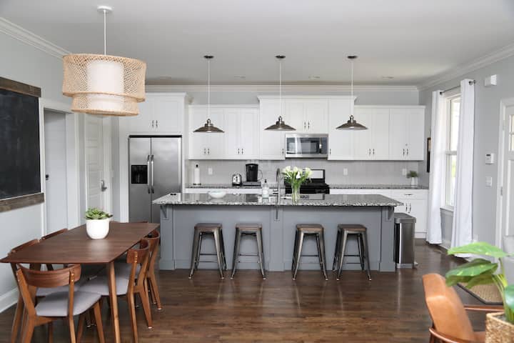 Welkom bij Robinson 's Nest! Dit nieuwe en mooi ontworpen huis met drie slaapkamers bevindt zich in een veilige, rustige gemeenschap vlak bij Main Street in het centrum van Chattanooga. Het biedt directe toegang tot koffiehuizen, restaurants, parken, boetieks, muziekpodia, galeries en meer! Naast alles wat Southside te bieden heeft, heb je toeristische bestemmingen in het centrum binnen handbereik. We zitten echt dicht bij alles!