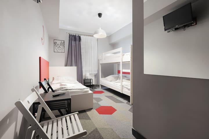 1 eenpersoonsbed, 1 stapelbed