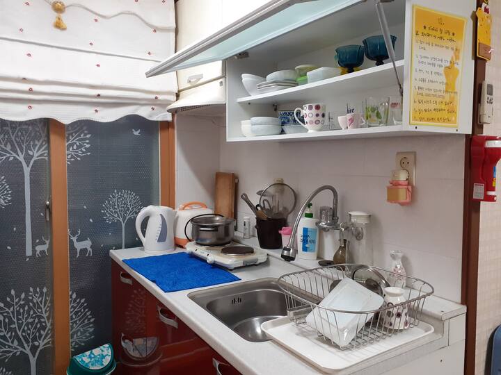 Samhwa-ryeong 3 (bed). Privékamer. Wonkamertype om een maand in Gyeongju te wonen. Individuele kookgelegenheid. 1 kamer per persoon.
