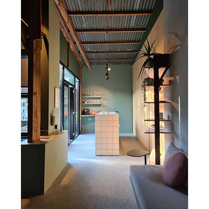 Wij wonen in Venlo (Limburg, NL), met onze kinderen. We houden van reizen (kamperen) met ons gezin en het buitenleven. Veel liefde voor onze familie, vrienden, muziek, kunst, natuur, goed eten en drinken. We verbouwen graag, waarbij we gebruik maken van wat er al is. We maakten van een fabriek ons huis. En van de naastgelegen loods een B&B. In 2019 hebben we onze B&B geopend om gasten te kunnen ontvangen. We hopen dat jullie ervan genieten.