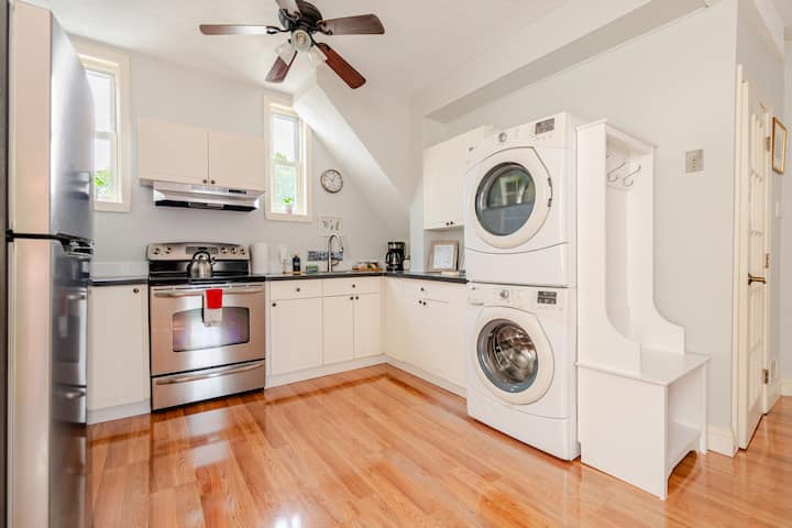 Modern, schattig koetshuis met 2 slaapkamers ten noorden van Boston