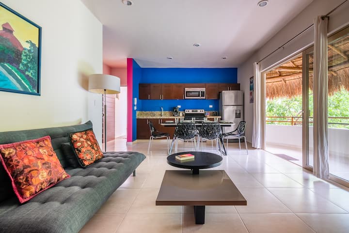 Casa de Colores is een perfecte locatie om de omgeving te verkennen. Het ligt dicht bij het strand en de stad — en na een dag verkennen is het heerlijk om op de patio op het dak te zitten en naar de sterren te kijken!