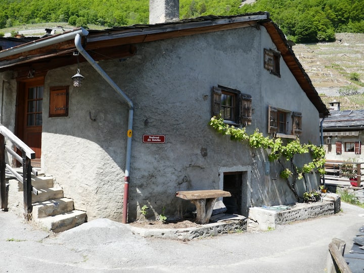 Rustieke mazot in de wijngaarden van Wallis
